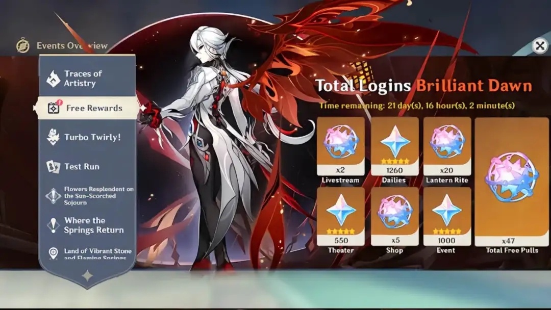 2.1日-2.5日期间,可以分别领取300、300、300、300、400的原石,合计就是1600原石,同样是按天发放,加上上面提到的十抽就是20抽奖励,还是非常香的,海灯节福利这波官方还是非常良心的,所以说各位旅行者们觉得怎么样呢?